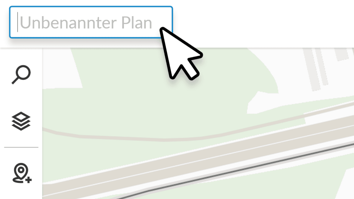 Wenn Sie bereits Zeichnungen in Ihrem Plan abgesetzt haben, wird links in der Kopfzeile der Text Unbenannter Plan angezeigt. Sie können einfach mit der Maus auf dieses Feld klicken und den gewünschten Namen eingeben. Der Name wird automatisch gespeichert, sobald Sie das Eingabefeld verlassen.